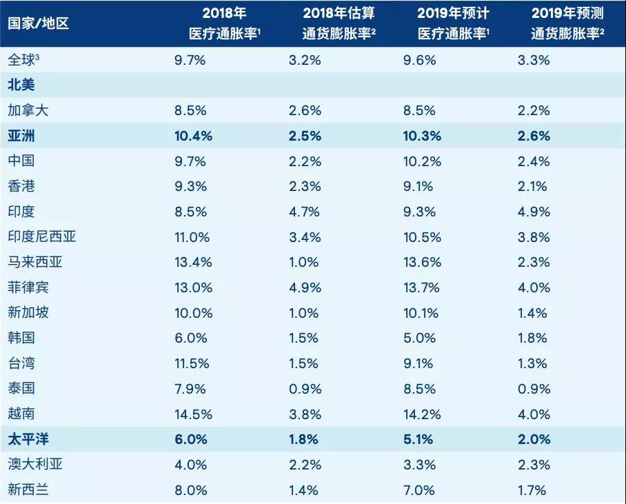 中国的医疗通胀率在9.7%,通货膨胀率在2.2%,不只是中国,全球医疗费用也是越来越贵。