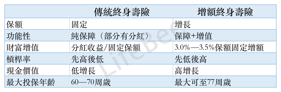 增额终身寿险风险保额较低,长期储蓄功能更为明显