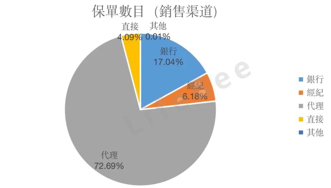 代理最多(72.69%)、银行次之(17.04%)、经纪渠道占比6.18%;
