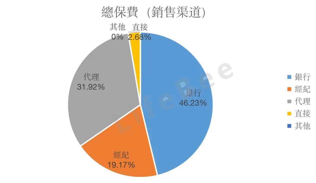 银行最多(46.23%)、代理次之(31.92%)、经纪渠道占比19.17%;