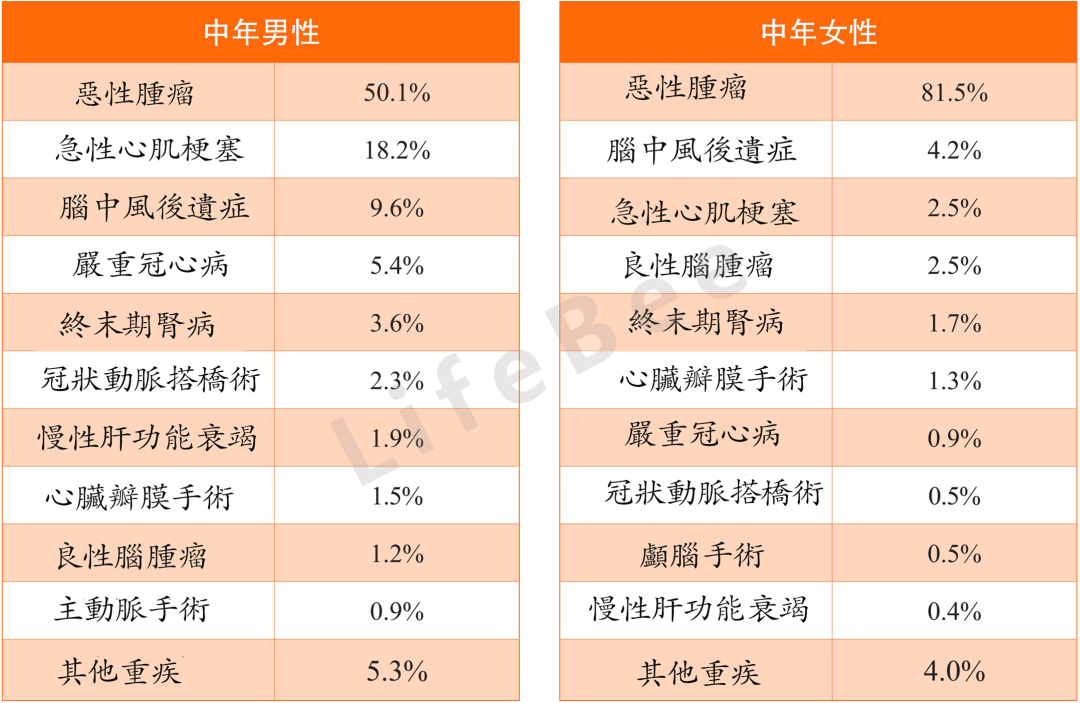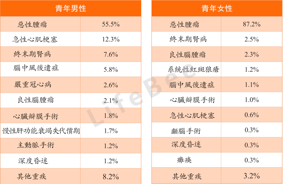 重疾为恶性肿瘤、脑中风后遗症、急性心肌梗塞,其中恶性肿瘤占比超过 80%。