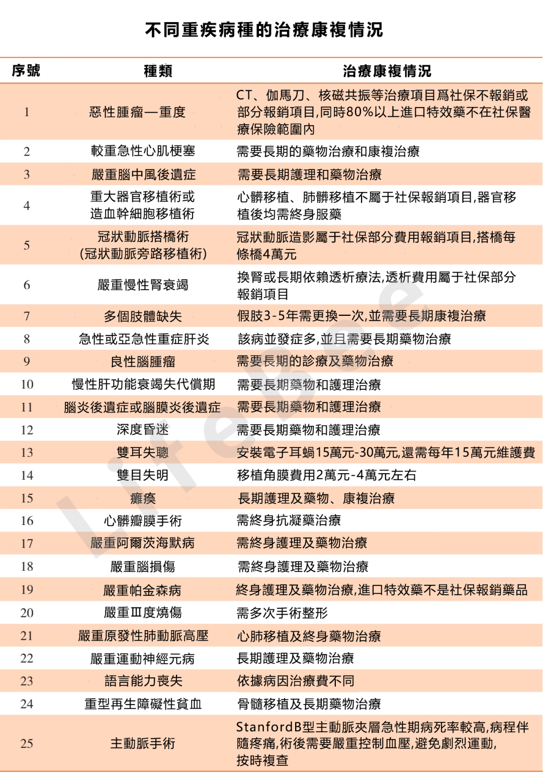 一方面,患者治疗重疾,通常需要进行较为复杂的药物或手术治疗,甚至有些重疾还未找到有效的治疗方法,