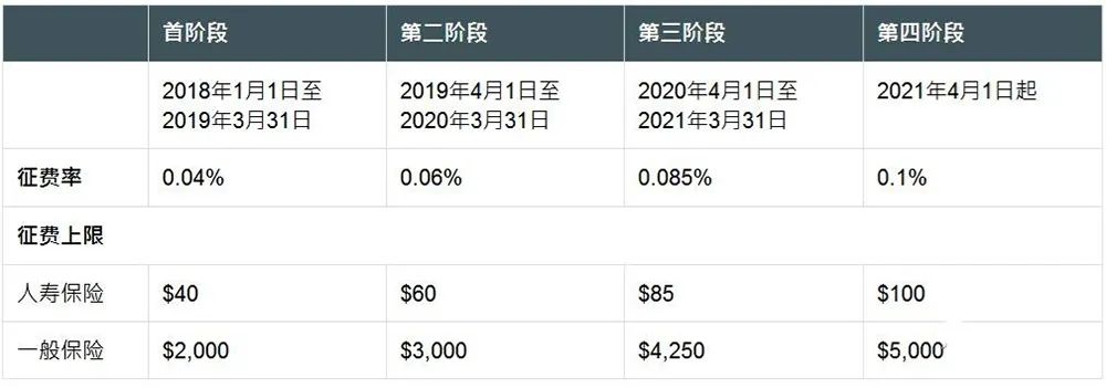 ,循序渐进调整至0.1%。每张保单须缴付的征费没有上限。