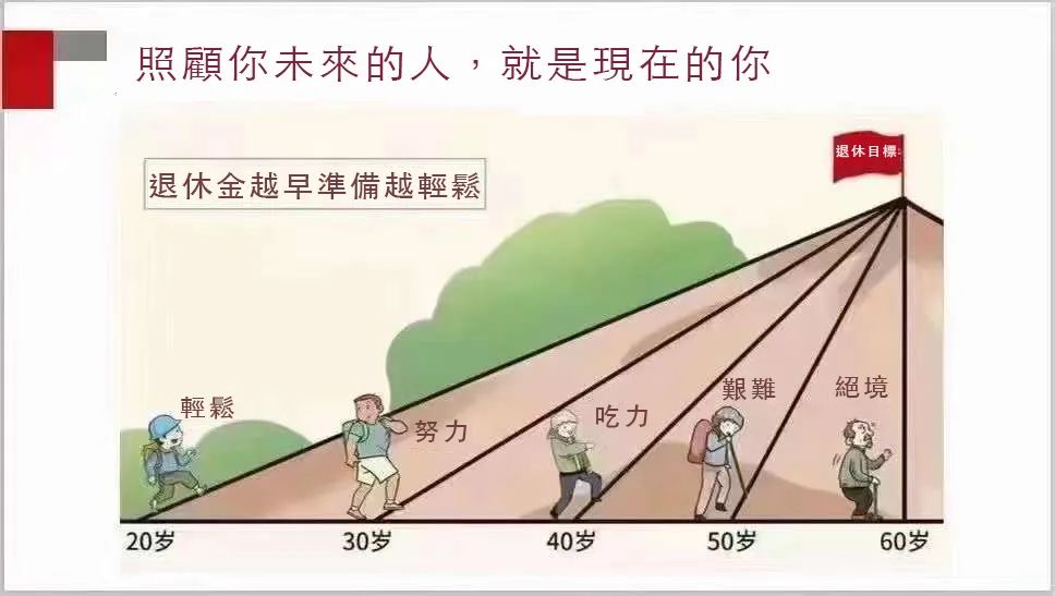 借着这个话题,保险代理人可以问问客户这几十年希望自己过怎样的生活,简单大致估算一下客户这样生活需要多少成本,用客户的收入、存款、投资收益等,结合通货膨胀,帮客户算算要过上理想生活需要多少金钱的支持。