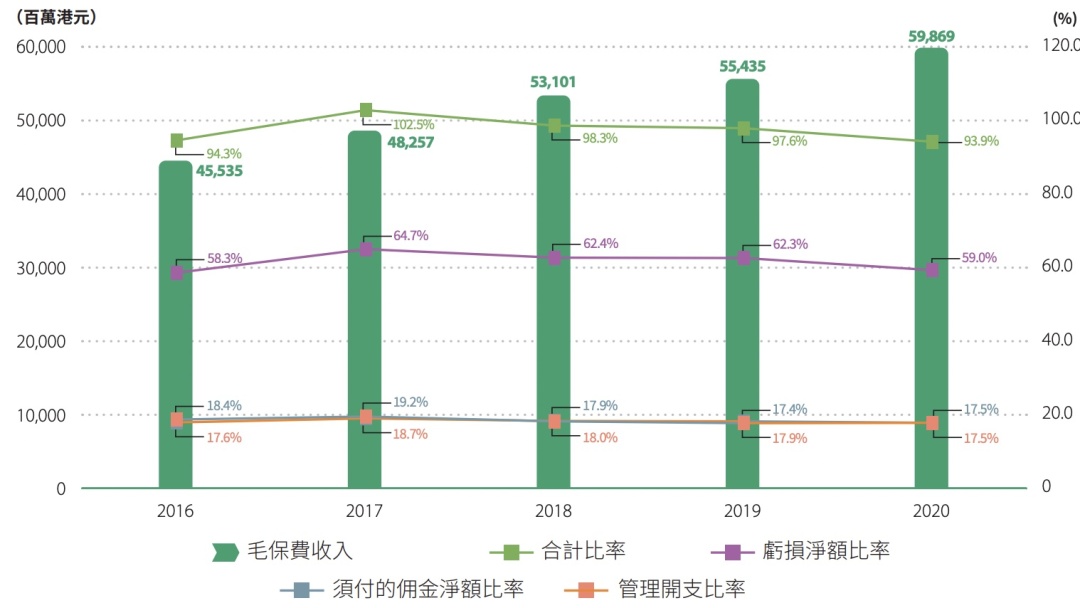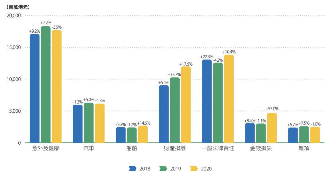 保监局针对各大保险公司的业务状况,对2020年香港保险业务各方面做了统计,