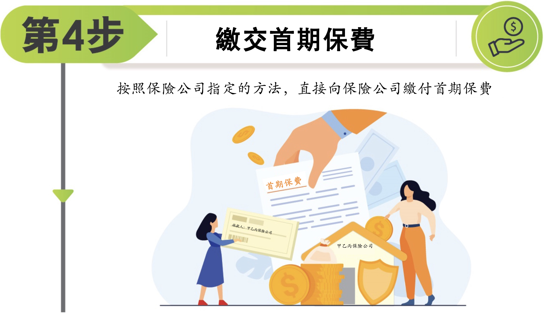 ,一般可选择一次过缴交所有保费,或于指定年期内,按年、按月、按季或每半年缴交。你应采用保险公司指定的方法直接向该保险公司缴付保费,